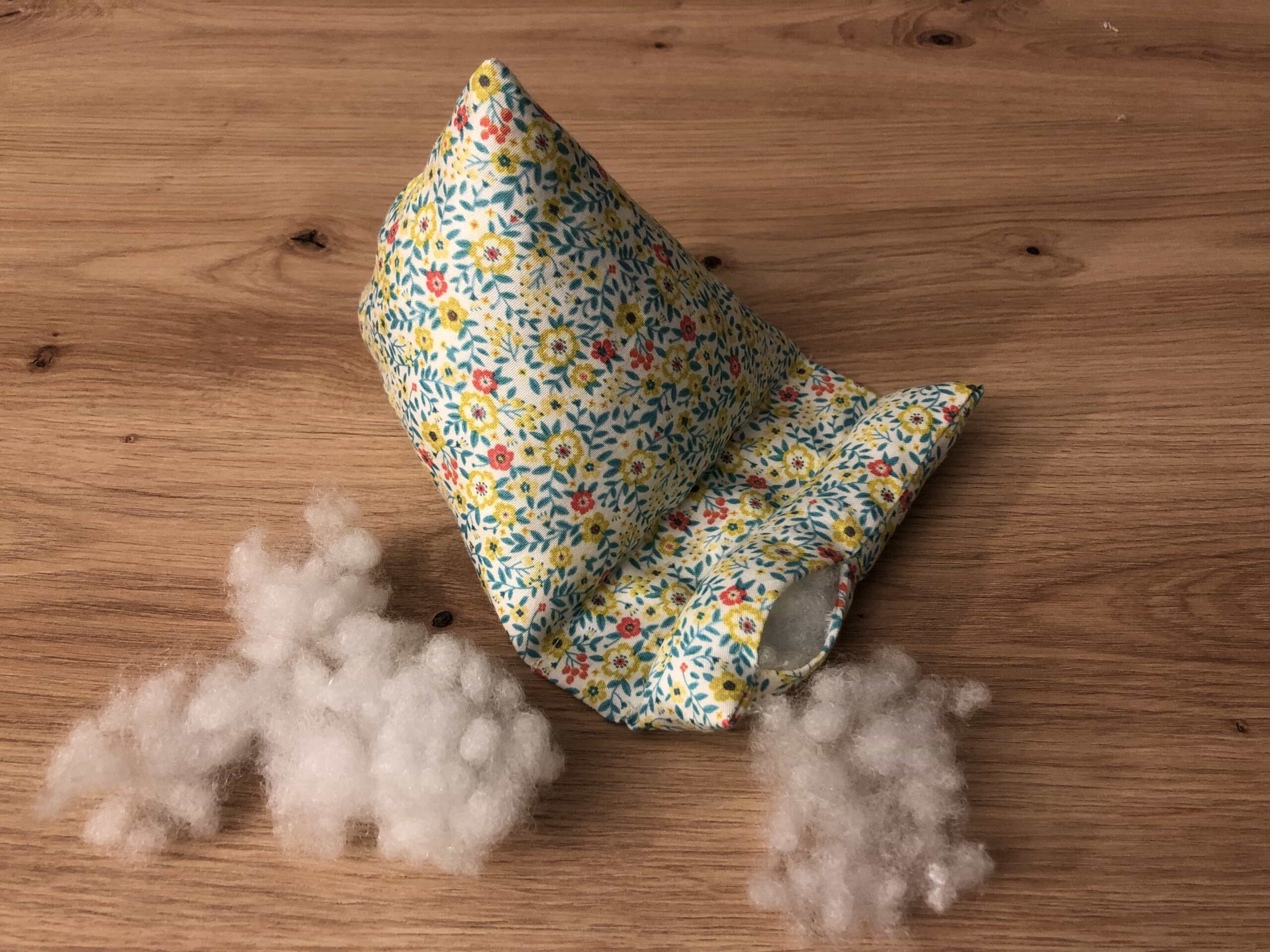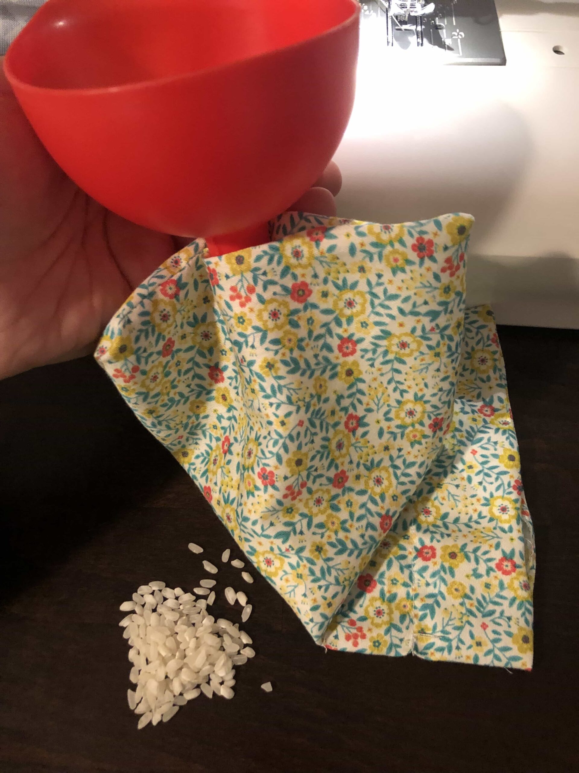 Arroz o granos de plástico (polly pelets) que dan consistencia y peso al cojín.
