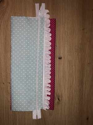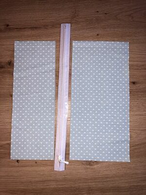 Ahora pasemos al bolsillo con cremallera. Esto se usa en un lado de la bolsa de pañales en lugar del bolsillo pequeño (Pieza C). La cremallera debe tener unos 30 cm de largo, puedes usar una cremallera terminada o una cremallera sin fin.